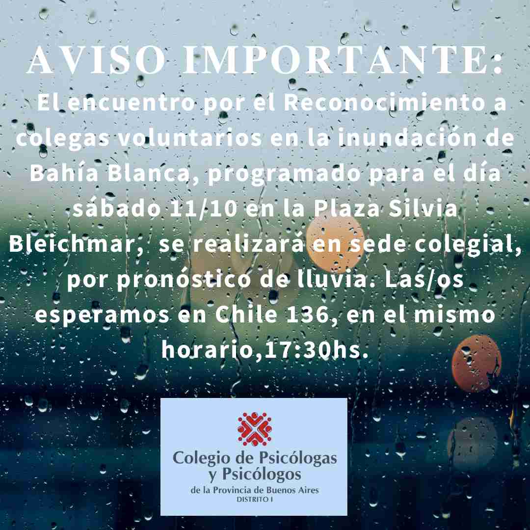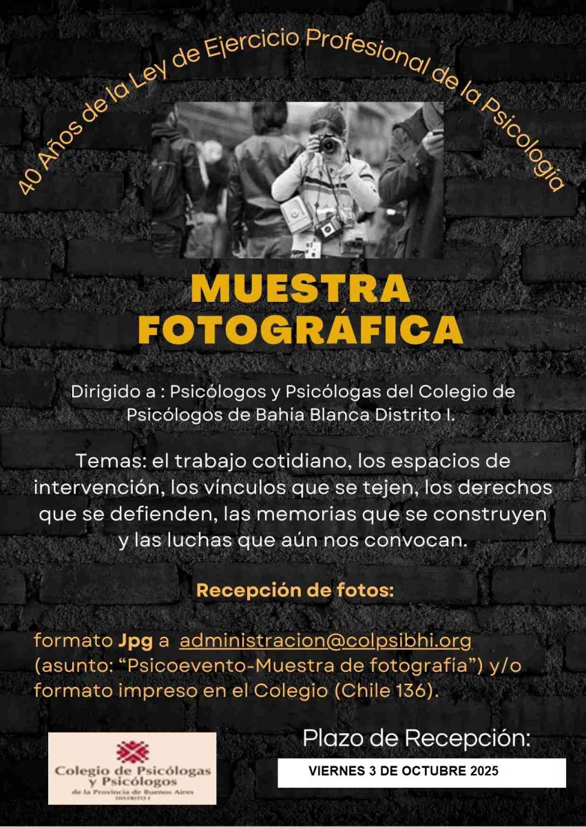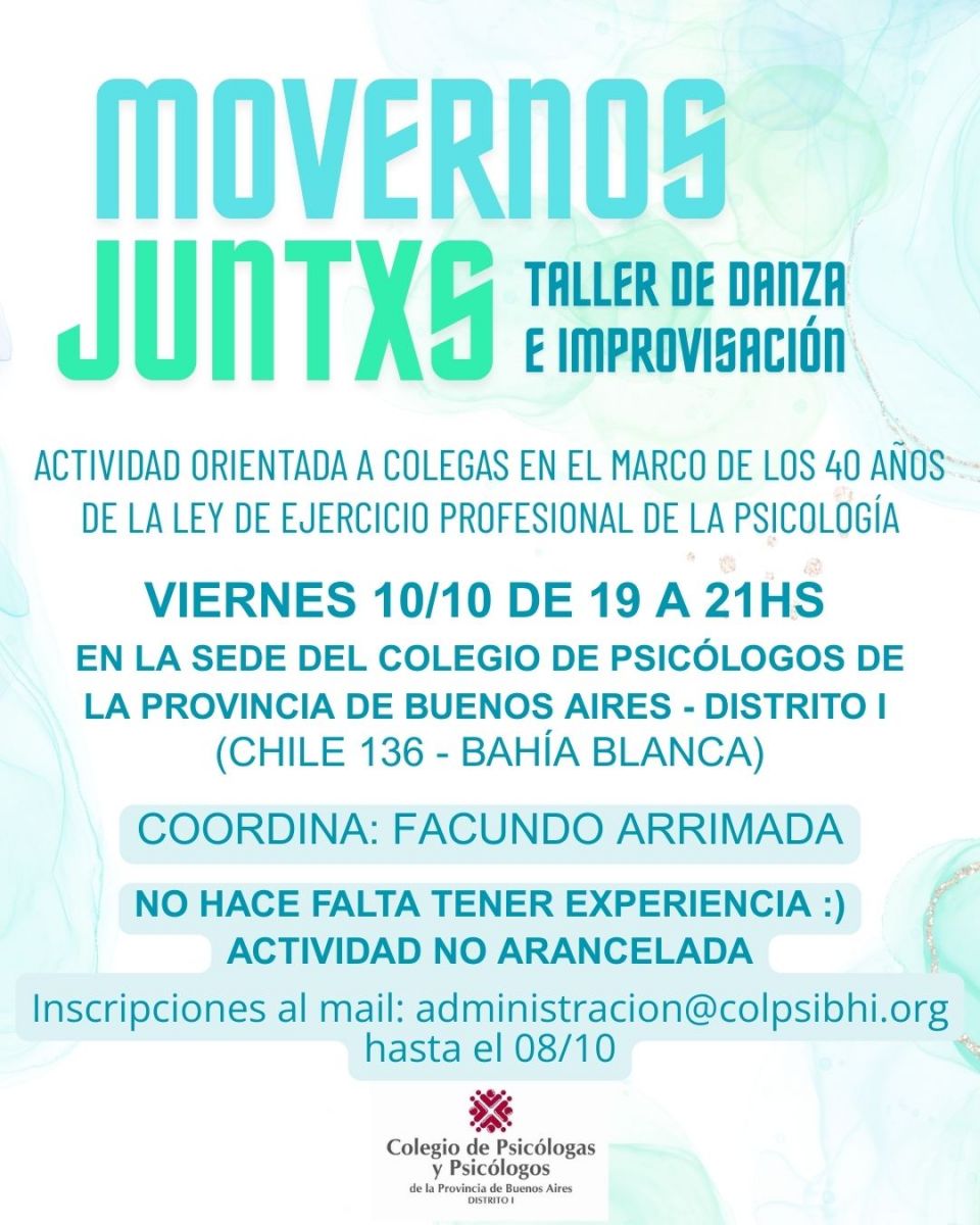 Lugar: Colegio de psicólogas/os. Chile 136- Bahía Blanca